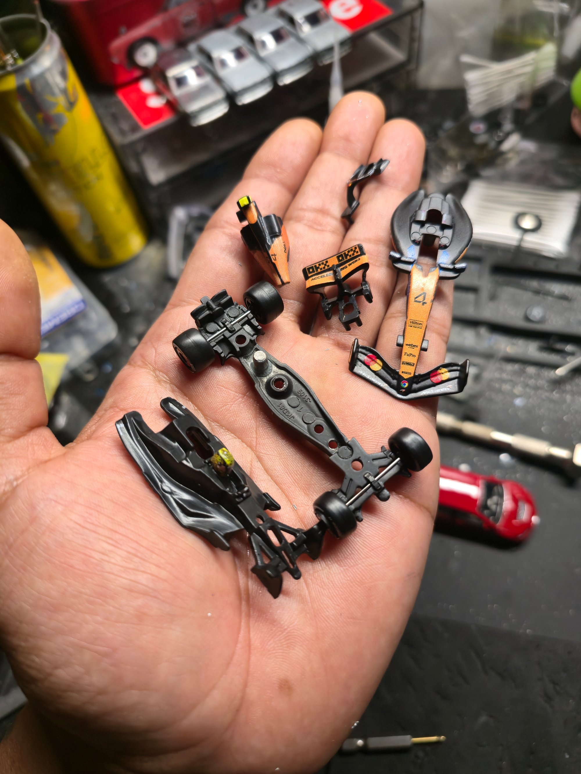 a lot of Time, but this one took a bit longer do to multiple pieces that had to be back together carefully having to shave things so they fall in place and most importantly the tiny rivet jobs were extremely stressful and back in its Original Hotwheels Packaging.